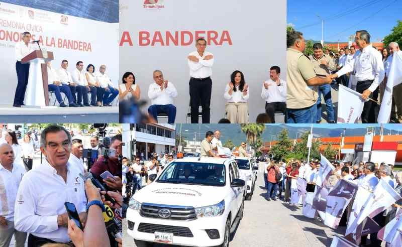 En esta ceremonia celebrada en el patinadero de la Unidad Deportiva Adolfo Ruiz Cortines, acompañaron al gobernador: la senadora electa, Olga Sosa Ruiz; el magistrado David Cerda Zúñiga, presidente del Supremo Tribunal de Justicia; la diputada Úrsula Salazar Mojica, presidenta de la Junta de Gobierno del Congreso del Estado; el diputado Humberto Prieto Herrera, presidente de la Diputación Permanente del Congreso; el rector de la Universidad Autónoma de Tamaulipas, Dámaso Anaya Alvarado; el presidente municipal de Victoria, Eduardo Gattás Báez; Adriana Lozano Rodríguez, secretaria de Finanzas; el general Julio César Islas Sánchez, comandante de la 48a Zona Militar; y, con la representación de la Guardia Nacional, el teniente Fernando Meneses Martínez.