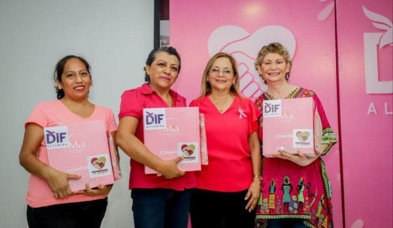 ALTAMIRA, TAM.- Para brindarles una calidad de vida más digna, apoyándolas además en su autoestima, la presidenta del Sistema DIF Altamira, C.P. Rossy Luque de Martínez entregó a 14 mujeres vencedoras del cáncer, prótesis mamarias externas, sostenes para prótesis, y mangas de compresión adquiridos gracias a las actividades de la Colecta con Causa desarrolladas durante el pasado mes de octubre.