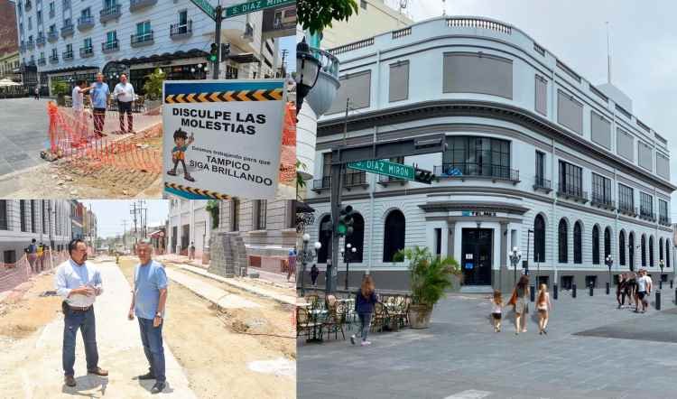 TAMPICO, TAM.- El Presidente municipal Chucho Nader supervisó este día el avance de los trabajos en la conversión de la calle Salvador Díaz Mirón a vialidad semipeatonal, en el tramo comprendido entre Cristóbal Colón y el acceso al nuevo Museo de la Ciudad en la zona centro de Tampico.