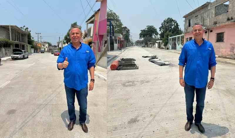 Chucho Nader estuvo también en la calle Malasia, donde se llevó a cabo la pavimentación a base de concreto hidráulico y reposición de las redes hidrosanitarias en el tramo comprendido entre las calles Japón y Palafox, beneficiando directamente a decenas de familias del entorno, que ahora transitan por una vialidad más segura, limpia y funcional.