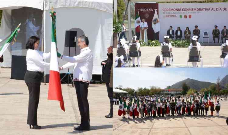 Ante la presencia del comandante de la Cuarta Región Militar, Maximiliano Cruz Ramos, y del comandante de la 48/a Zona Militar, Julio César Islas Sánchez, representantes de los Poderes Legislativo y Judicial, así como de alumnas y alumnos, el gobernador señaló la importancia de que el festejo por la bandera nacional tenga un significado más fuerte y duradero, y que sea una invitación al civismo, a los valores, a la solidaridad, a la participación social, al amor por México y por Tamaulipas.