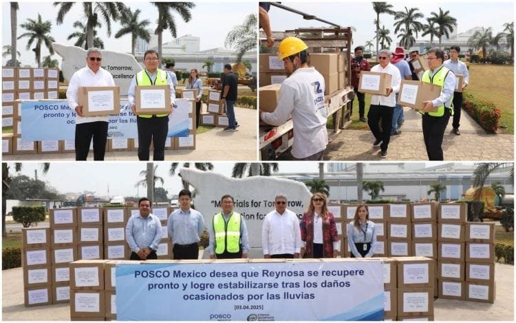 - El alcalde Armando Martínez recibió cien despensas de la empresa POSCO México para destinarlas a las familias afectadas del municipio de Reynosa.