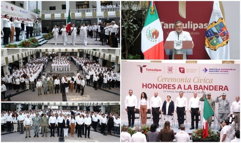 También acompañaron al gobernador en esta ceremonia cívica: Héctor Joel Villegas González, secretario general de Gobierno; diputada Cynthia Jaime Castillo, presidenta de la Mesa Directiva del Congreso; diputado Víctor Manuel García Fuentes, presidente de la Comisión de Salud; magistrado Hernán de la Garza Tamez, presidente del Supremo Tribunal de Justicia; general Enrique García Jaramillo, comandante de la 48 Zona Militar, y el general Francisco Alvarado Terán, coordinador de la Guardia Nacional en Tamaulipas, además de funcionarios del gabinete estatal y personal de enfermería de diferentes unidades médicas.