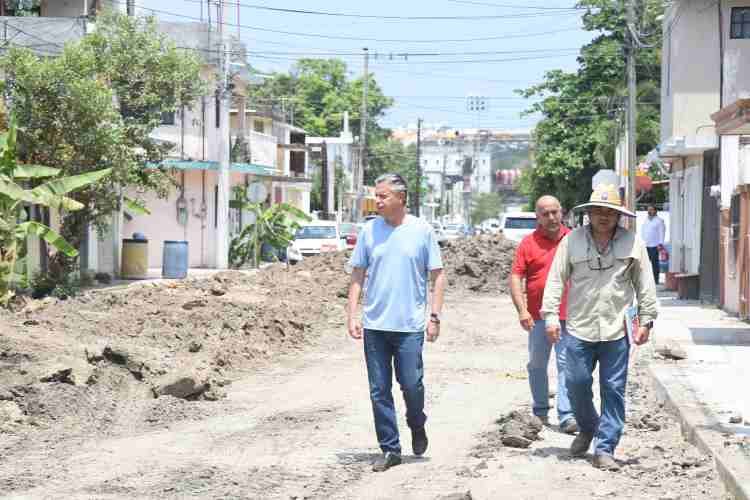 TAMPICO, TAM.- El Presidente municipal Chucho Nader supervisó este día los trabajos de pavimentación a base de concreto hidráulico que se llevan a cabo en la calle Victoria de la colonia El Golfo, con el propósito de ampliar la conectividad y elevar la calidad de vida de la población asentada en este importante sector.