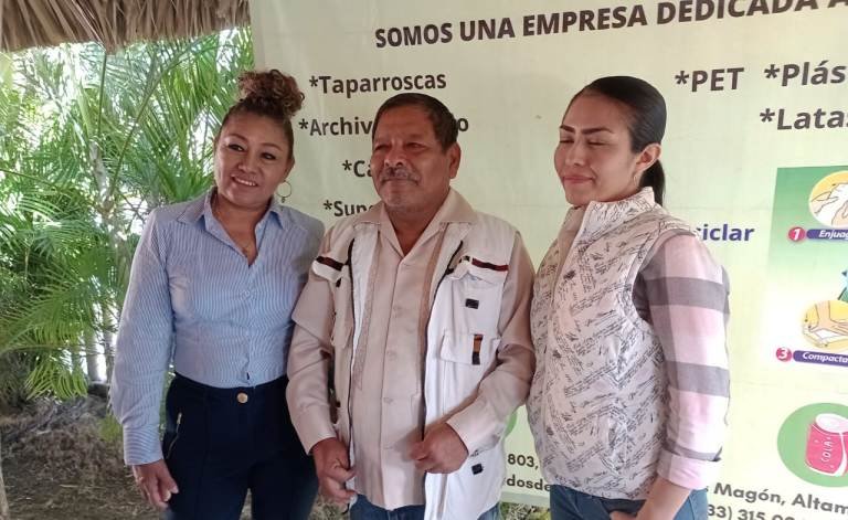 La Directora y empresaria de Reciclados del puerto, El Director de Comunicación Social de Reciclados del Puerto Lc. Mario Segura y la Coordinadora de Reciclados Evelyn Cedillo.