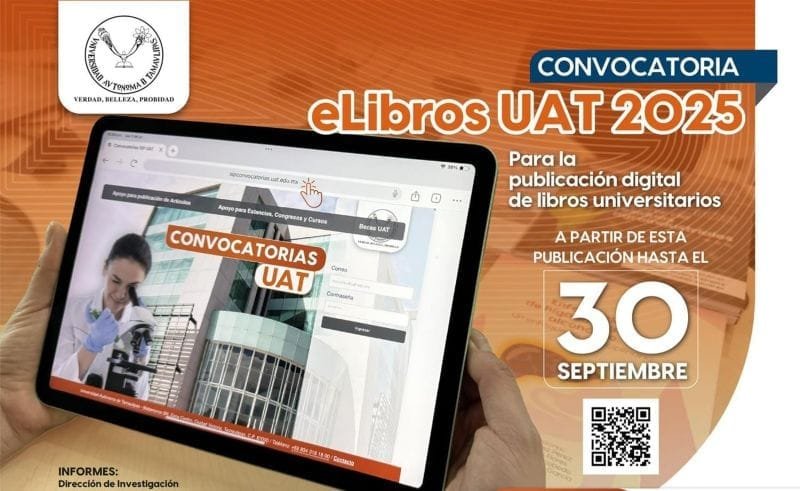 La Universidad Autónoma de Tamaulipas (UAT) dio a conocer la convocatoria “eLibros UAT 2025”, una iniciativa dirigida a fomentar la publicación digital de libros universitarios, y a fortalecer la producción académica con sentido humanista y socialmente responsable.