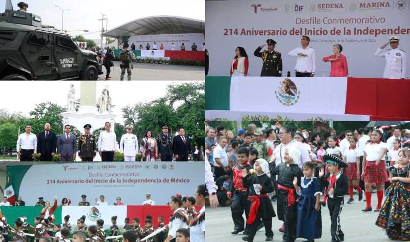 Acompañado por la presidenta del DIF Tamaulipas, María de Villarreal, así como por el general Julio César Islas Sánchez, comandante de la 48 Zona Militar, y el contralmirante Carlos Eduardo L’Eglise Escamilla, comandante de la Primera Región Naval, el gobernador presenció el paso de los contingentes a lo largo de la Avenida Tamaulipas, donde miles de familias tamaulipecas se congregaron.