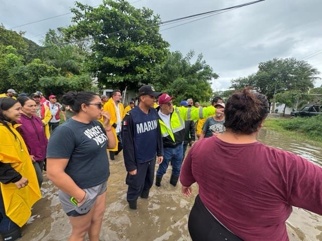 Posteriormente, el alcalde Armando Martínez realizó un recorrido por las zonas más afectadas, visitando diferentes colonias y canales a cielo abierto, sitios como el sector La Pedrera y la colonia Las Adelitas, así como, el sector Laguna de la Puerta, donde supervisó las labores de evacuación y atención a las familias.