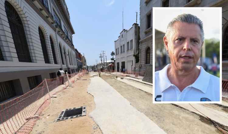 TAMPICO, TAM.- El Presidente municipal Chucho Nader efectuó la supervisión de los trabajos que se realizan en la calle Salvador Díaz Mirón de la zona centro, para convertir un tramo de la misma en vialidad semipeatonal.
