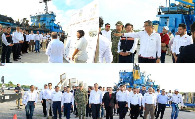 En este recorrido y al pie de las dragas Montebello y Banderas, de la Secretaría de Marina, el director general de la Administración Portuaria Integral de Tamaulipas (API), Gustavo Guzmán Fernández, presentó una amplia explicación de los avances, planes de desarrollo y los retos que enfrenta el Puerto del Norte, un proyecto histórico que hoy se ha cristalizado gracias a la visión del gobernador Américo Villarreal.
